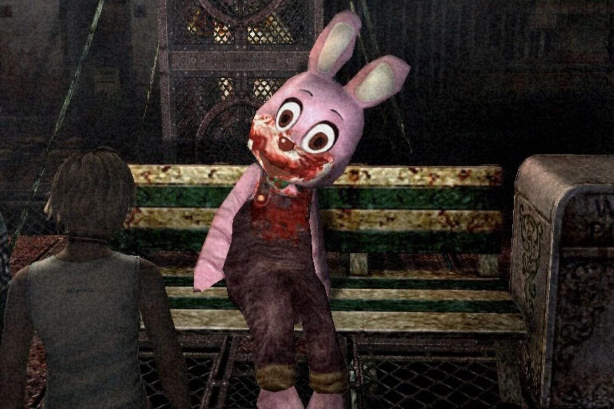 Es 2003, has avanzado mucho en tu siniestra aventura por Silent Hill 3 y la llegada al parque de atracciones de Lakeside con Heather Mason no parece muy halagüeña. En mitad de la oscuridad, aparece un enorme muñeco de peluche en forma de conejo rosa y que posee unos ojos enormes junto a una boca manchada de sangre. No queda claro si es un peluche, un ser siniestro que se va a mover cuando menos te lo esperes o si dentro de su figura se esconde un cadáver. Por supuesto, la imagen se ha vuelto icónica de la saga de Konami.