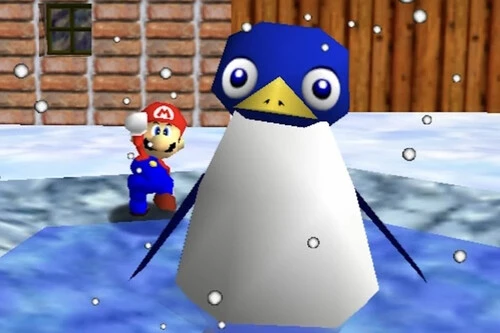 Te hablo de los eventos de Lil' Penguin Lost de Cool, Cool Mountain, que oculta la segunda estrella del mundo 4. La misión para hacerte con ella es muy sencilla: llevar a un pequeño pingüino junto a su madre. Cuesta lo suyo, pero no es imposible. Pero el evento realmente importante para conocer el origen del meme ocurre tras entregar a la cría y conseguir la estrella, pues muchos jugadores cogían al pingüinito y lo tiraban por el enorme acantilado. No había recompensa. Era un acto de pura maldad. No sé por qué hablo en pasado, porque los jugadores lo hacen todavía hoy.