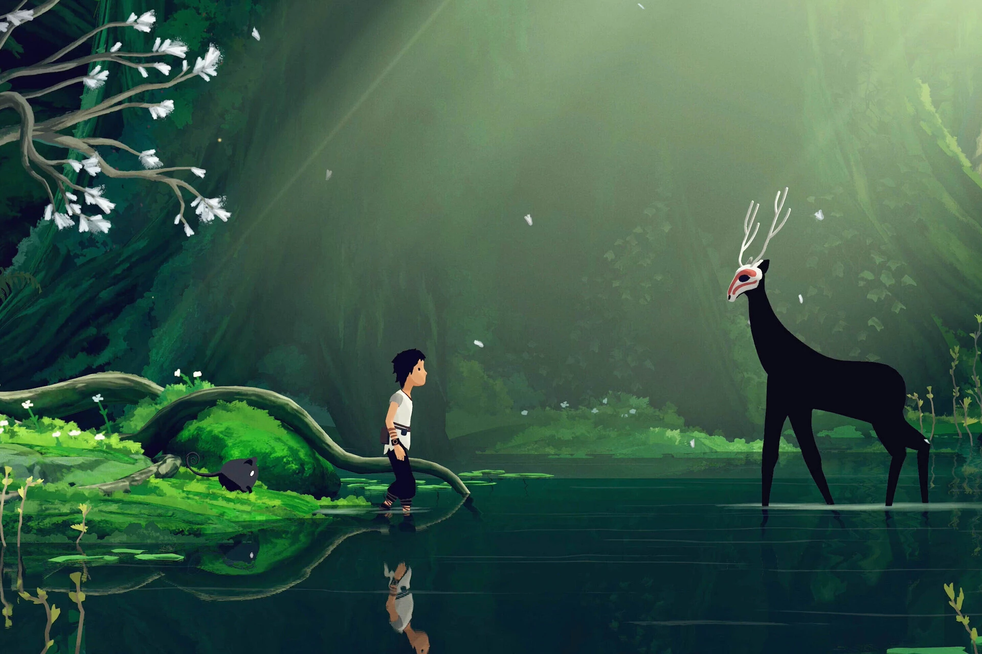 Del mismo modo que no puedo asegurar qué es exactamente esa criatura con máscara kabuki y que inevitablemente nos traslada al encuentro con el dios del bosque de La princesa Mononoke. Hay un tendencia interesante hacia lo que representa Studio Ghibli, lo cual es más que apropiado teniendo en cuenta la temática que presenta el videojuego. Tomar el control de los animales es una forma de trasladar esa percepción de cómo vive la naturaleza, pero a nivel de diversión/entretenimiento puro se queda muy lejos.