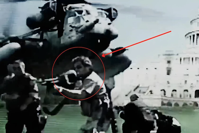 Eso sí, algunos soldados del ejército de los Estados Unidos están bien pertrechados y preparados para proteger a la clase política junto al Capitolio de Washington. Entre ello, en el minuto 12:38, podemos ver al mismísimo Snyder camuflado como uno de los militares que portan grandes armas frente a un helicóptero. Podéis verle en la imagen que ilustra este post.