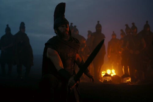 Hay instantáneas como la del gigante Polifemo o cuando emergen los soldados de la tierra que me recordaron a The Northman de Robert Eggers, precisamente un cineasta que trabaja como pocos el uso de la luz y las sombras a lo largo de su obra. Como sucedía en aquella película protagonizada por Alexander Skarsgard, es el fuego lo único que altera las composiciones nocturnas y oscuras, dándole a la vez una iluminación realista a lo que vemos, pero un matiz fantástico a lo que no.