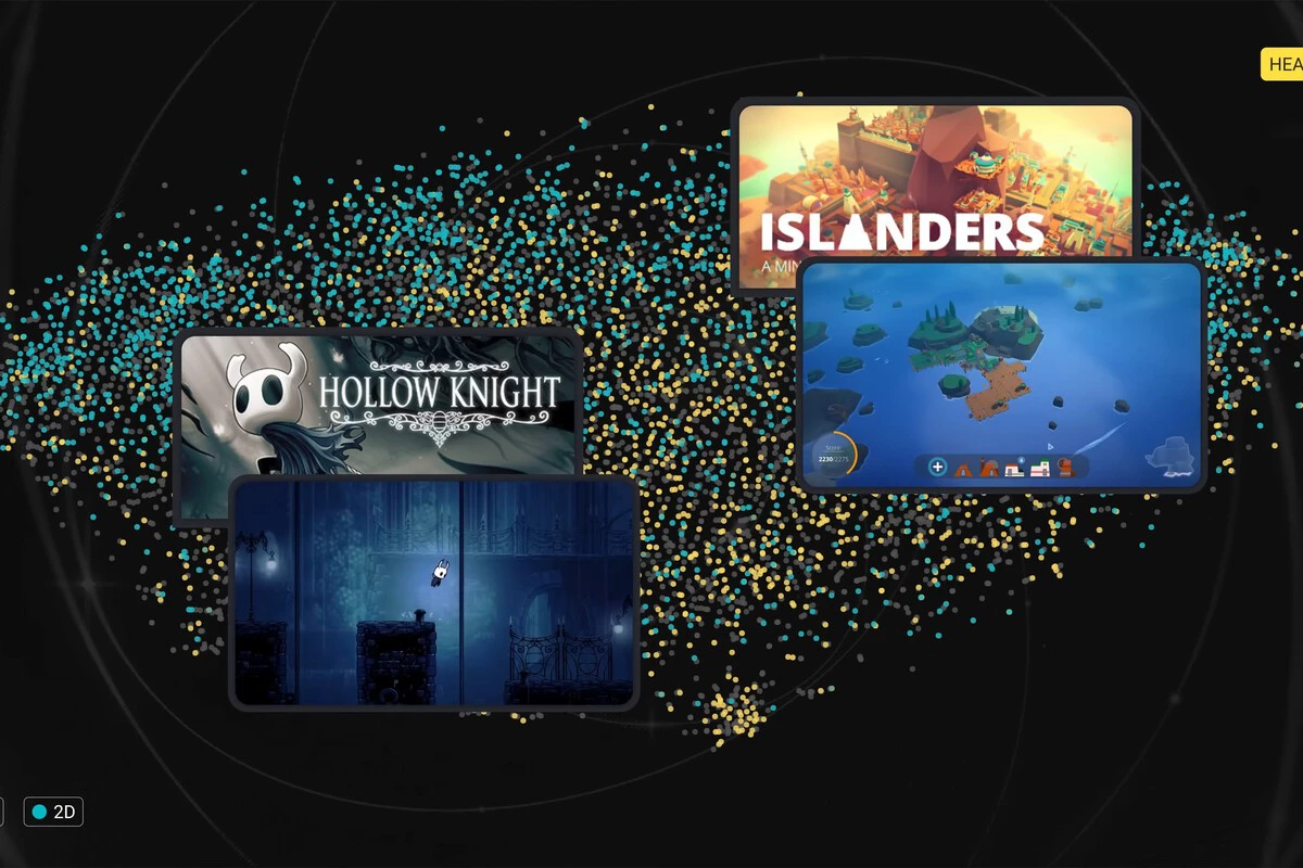 Fue entonces cuando sacó partido de un modelo de aprendizaje automático llamado red neuronal, a la que entrenó previamente con conjuntos de datos de referencia gracias a más de un millón de imágenes etiquetadas en mil categorías, entre las que se podían encontrar animales, vehículos y otros objetos cotidianos. De esta manera, trató de seguir un ejemplo similar con los juegos de Steam para generar un mapa con miles de puntos, cada uno correspondiente a una captura de pantalla.