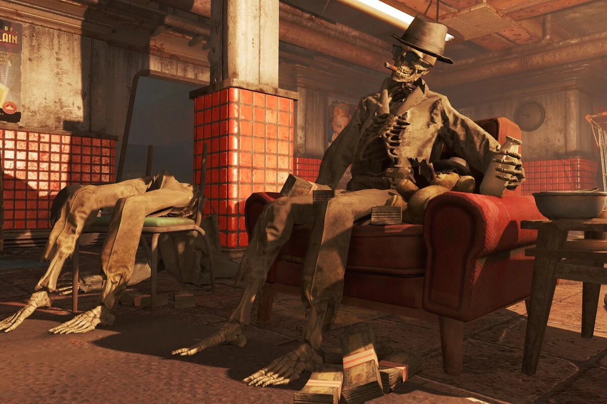 Son detalles que todos los jugadores aprecian alguna vez durante su aventura, pero que pasan por alto una vez pasa el efecto de la sorpresa. Craso error, porque puedes conocer mucho del mundo de Fallout gracias a ellos. Además, no todos son trágicos. Los desarrolladores también aprovechan estos esqueletos para crear situaciones absurdas: desde un hombre con un ventilador en el pene y rodeado de sangre seca hasta representaciones inspiradas en películas, series y otros juegos.
