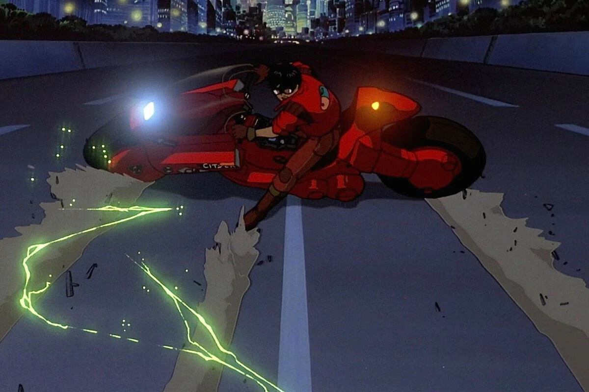 Kaneda, el protagonista de la película, derrapa con su vehículo de dos ruedas, al mismo tiempo que vemos rayos eléctricos en el aire, ofreciendo una estampa brutal. La fluidez de la animación, la pose del personaje y el impacto visual que provoca ha derivado en que haya quedado en el recuerdo de todo espectador, hasta el punto de que muchas otras series, películas y hasta videojuegos lo hayan homenajeado.