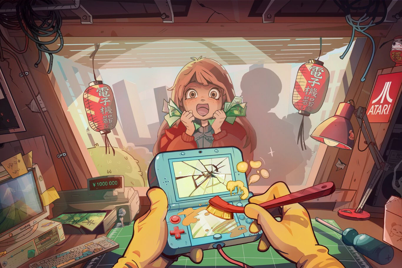 Porque sí, es posible utilizar el fascinante mundo virtual para encontrar en una suerte de eBay más piezas, comprar licencias oficiales para reparar una PSP o revisar el correo electrónico para recibir más proposiciones. Con una legendaria conexión de 128 mb/s, es maravilloso acudir a un monitor que con el Windows 98 desplegado. Un acierto absoluto haber situado el contexto del título en Japón durante esta época, ya que la penetración de las redes sí que era mucho más habitual en el país asiático que en el resto del mundo.