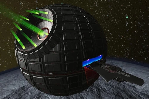 En el vídeo que comparte puedes ver cómo una Razor Crest y un Destructor Imperial salen de su interior, demostrando así su gran tamaño una vez más. También cuenta con luces que simulan en superláser y otra intermitente que señala el hangar. Si bien algunos jugadores creían que era una base con forma de Estrella de la Muerte, su creador ha aclarado que se trata de una corbeta construida con el sistema modular de Voyagers. Es decir, puede moverse libremente por el espacio como la estación de combate original.